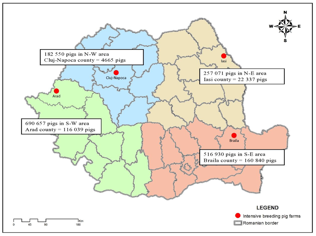 The studied PRRS outbreaks have appeared in four important counties in different geographical areas in Romania.