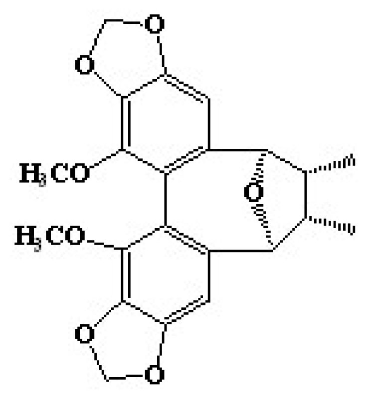 - Kuo, Y.H.; Li, S.Y.; Huang, R.L.; Wu, M.-D.; Huang, H.C.; Lee, K.H. Schizarin B, C, D, and E, Four New Lignans from Kadsura m atsudai and Their Antihepatitis Activities. J. Nat. Prod 2001, 64, 487–490. [Google Scholar]