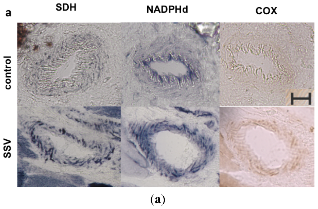 - Planitzer, G.; Baum, O.; Gossrau, R. Skeletal muscle fibres show NADPH diaphorase activity associated with mitochondria, the sarcoplasmic reticulum and the NOS-1-containing sarcolemma. Histochem. J 2000, 32, 303–312. [Google Scholar]