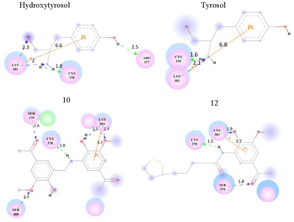 The key interactions between predicted good inhibitors and 1K4U.