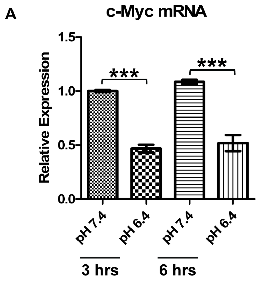 2.2. Downregulation of c-Myc Protein by Acidosis Is Due to Reduced c-Myc Transcriptional Level, but not mRNA or Protein Stability, in U937 Lymphoma Cells