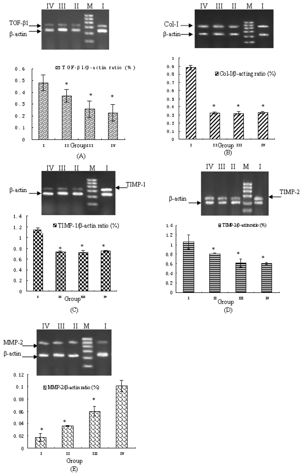 2.2. Effects of Combined Drug Rreatment on TGF-β1, Col-I, TIMP-1, TIMP-2 and MMP-2 mRNA Expression in HSC-T6 Cells
