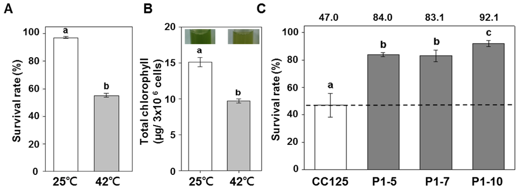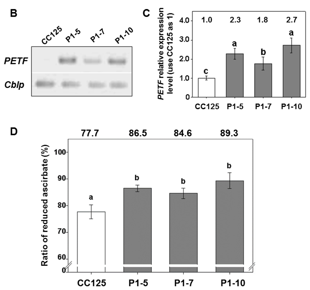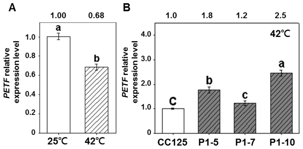 2.2. Overexpression of PETF in Chlamydomonas Enhances Stress Tolerance to Heat