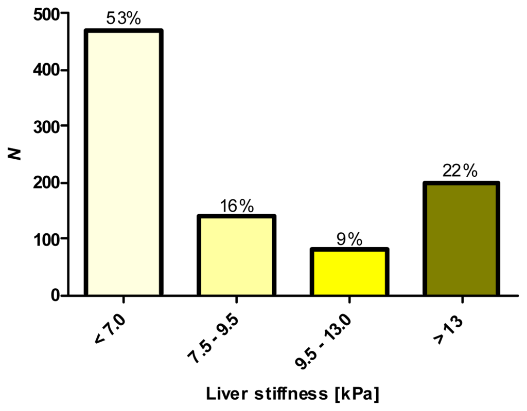 | Liver stiffness (kPa) | 6.8 (2.2–75.0) |