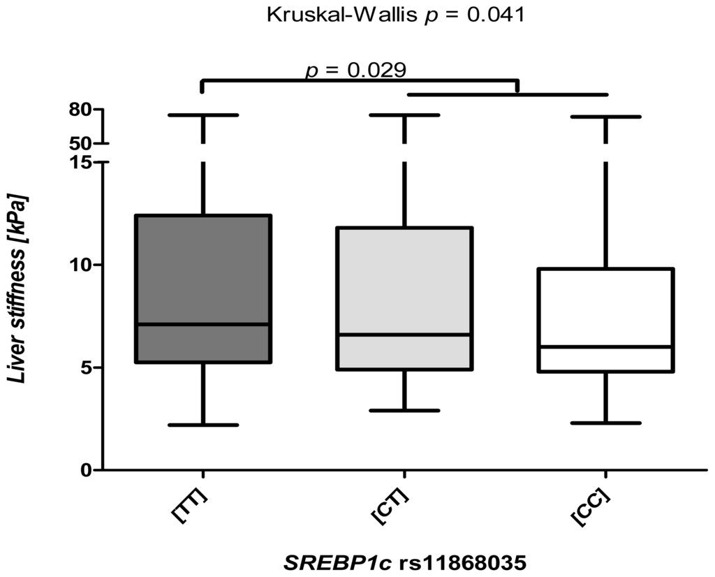 Chicago/Turabian StyleKrawczyk, Marcin, Frank Grünhage, and Frank Lammert. 2013. "Identification of Combined Genetic Determinants of Liver Stiffness within the SREBP1c-PNPLA3 Pathway" International Journal of Molecular Sciences 14, no. 10: 21153-21166. https://doi.org/10.3390/ijms141021153