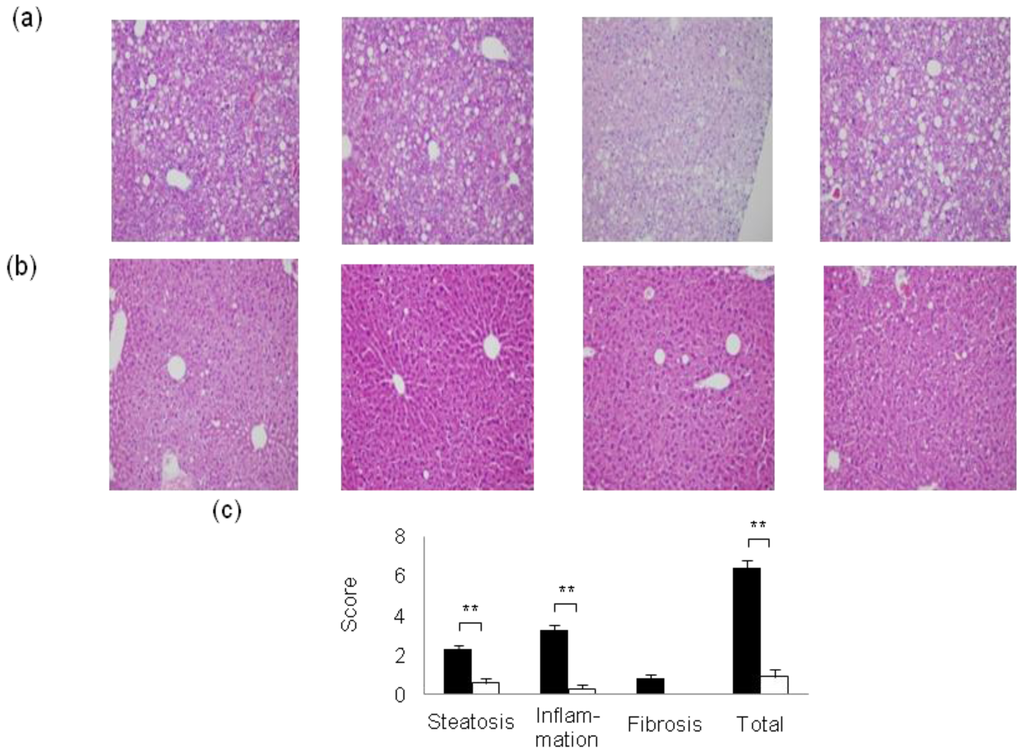 - Nakayama, H.; Otabe, S.; Ueno, T.; Hirota, N.; Yuan, X.; Fukutani, T.; Hashinaga, T.; Wada, N.; Yamada, K. Transgenic mice expressing nuclear sterol regulatory element-binding protein 1c in adipose tissue exhibit liver histology similar to nonalcoholic steatohepatitis. Metabolism 2007, 56, 470–475. [Google Scholar]