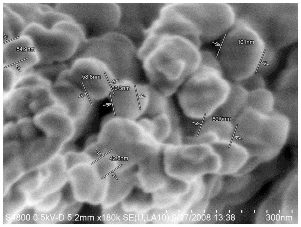 The Co-ferrite has the stoichiometry of CoFe2O4 in the bulk form. In the nanoparticle form, it was shown that the distribution of the cations within the spinel lattice of the nanoparticles is changed [55,56,63–65].