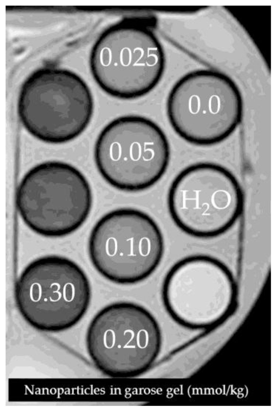 - Bulte, J.W.; Brooks, R.A.; Moskowitz, B.M.; Bryant, L.H.; Frank, J.A. Relaxometry and magnetometry of the MR contrast agent MION-46L. Magn. Reson. Med 1999, 42, 379–384. [Google Scholar]