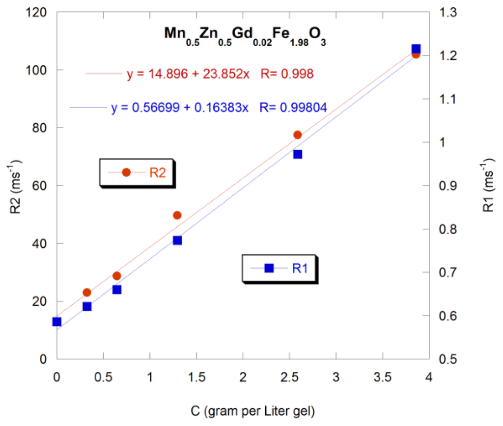 - Issa, B.; Qadri, S.; Obaidat, I.M.; Bowtell, R.W.; Haik, Y. PEG coating reduces NMR relaxivity of Mn0.5Zn0.5Gd0.02Fe1.98O4 hyperthermia nanoparticles. J. Magn. Reson. Imaging 2011, 34, 1192–1198. [Google Scholar]