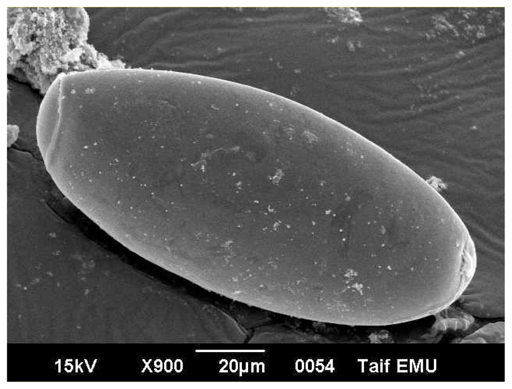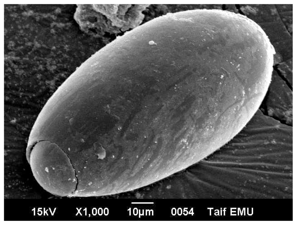 Fasciola egg (control, non treated) Notice the smooth texture of the egg surface.