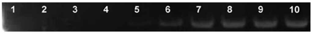From PCS analysis, the diameter of the SLNs in absence of BSA was 150, 183 and 193 nm for 2, 5d and 6d, respectively. However, in the presence of BSA the diameter increases with increasing the BSA concentration in all the cases. For 2-based SLNs the diameter increases from 152 to 166 nm with increasing concentration of BSA up to the physiological concentration of 40 mg/mL. This was attributed to the formation of a BSA capping layer at the surface of SLNs as observed for polymeric nanoparticles based on poly(N-isopropylacrylamide-co-methacrylic acid) []. The adsorbed layer thickness was estimated at 8 nm, equivalent to a double layer of BSA molecules. Regarding the 5d-based SLNs, the diameter increased by 34 nm. This was attributed to a high affinity of BSA for the surface of 5d-based SLNs; layer thickness is of the order of 17 nm. Adsorption could occur by two mechanisms; firstly, the BSA interacts with the SLNs with the same geometry as for 2 but with four layers adsorbed, or secondly, BSA is adsorbed in a single layer adsorption along its major axis (14 nm). For the 6d-based SLNs, the size increase was 28 nm, here; the protein layer was estimated at 14 nm and is best seen as an adsorption along the major axis of BSA. This difference in the adsorption could arise from the variation of the hydrophilicity of the SLN surface and the specific interactions with the known amino acid binding sites of BSA (Arg117, Lys351 and Lys475) []. For more details regarding the interaction of the SLNs with BSA, non-contact mode AFM imaging was undertaken; no aggregation was observed for the SLNs in the presence of BSA which is a major advantage for the use these systems in IV drug delivery. The haemolytic effects of the SLNs based on derivatives of 2 have been investigated (Figure 5) [].