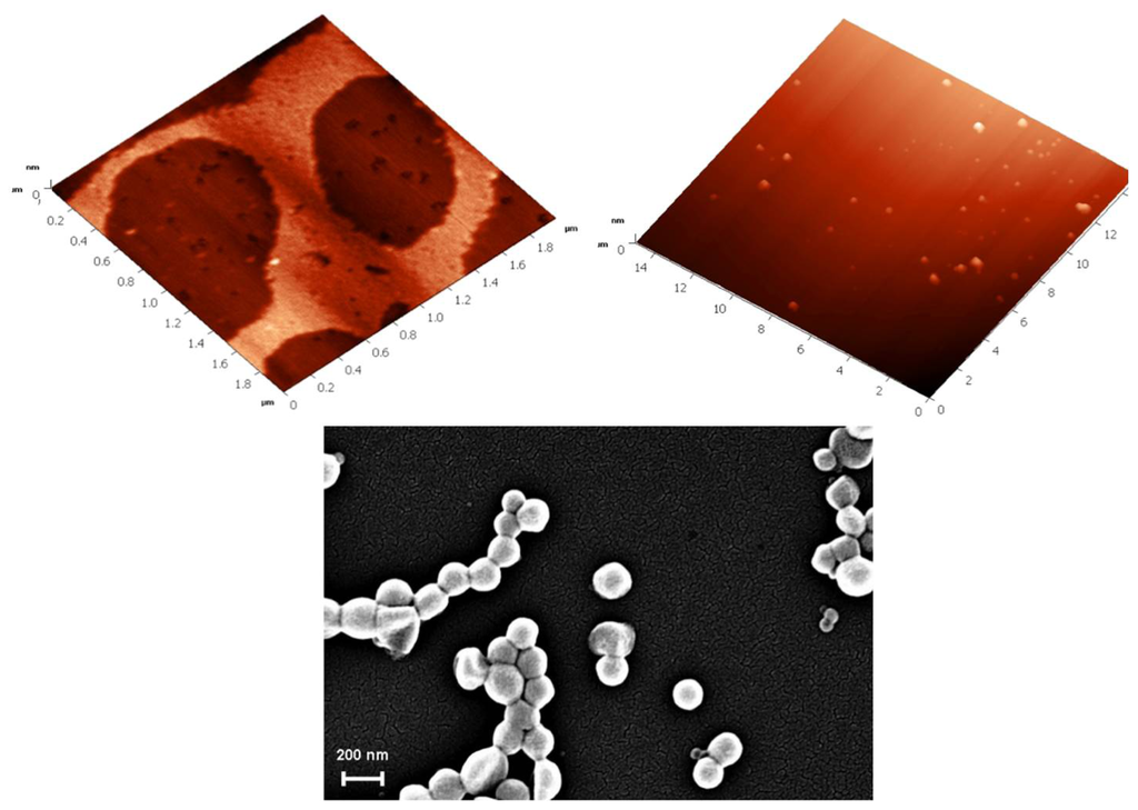 In order to demonstrate the potential use of SLNs based on 2a–d as topical delivery systems or cosmetic additives, their incorporation in different gel matrices such as carpobol 980, carpobol 2020, hyaluronic acid and xanthan was investigated using contact mode AFM imaging and PCS []. The results showed that the presence of the SLNs within the gels was easily detected in all cases. Moreover, these colloidal particles were dispersed in the sub-surface of gels as discrete particles of approx. 150 nm in diameter with no specific polymer-SLNs interaction.