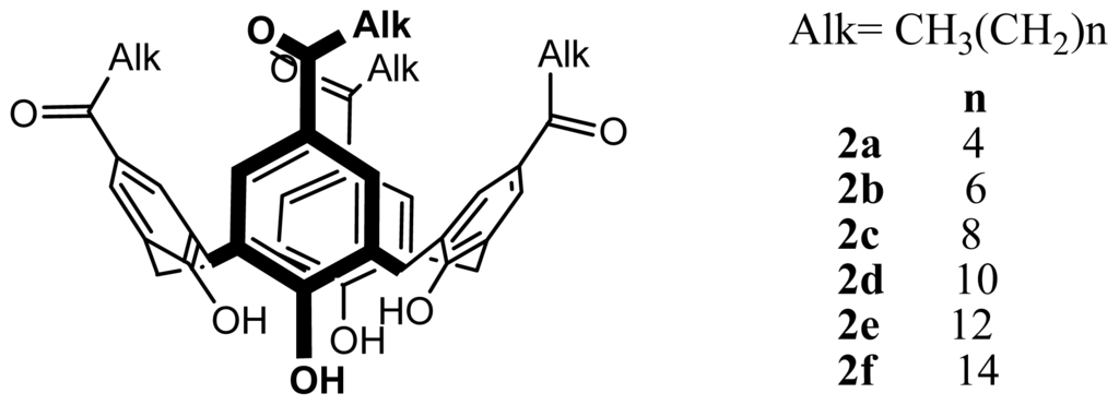 After the para-acylcalix[]arenes the group of Coleman attempted, without success, to use para-acylcalix[]arenes [] and para-acylcalix[]arenes [] to formulate SLNs.