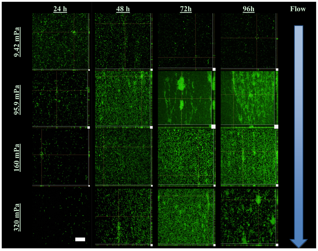 18]. Using microfluidic flowcells, we quantify various biofilm parameters as well as biofilm-derived planktonic cell yield under higher average shear stresses than those applied previously to determine whether