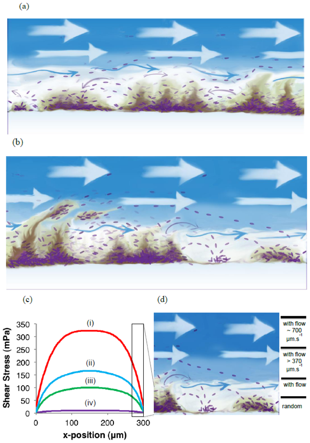 9]. The term “erosion” is frequently used to describe one of the most common, and likely underestimated, biofilm detachment processes. While erosion is defined in the Merriam-Webster Learner’s Dictionary as “the gradual destruction of something by natural forces”, or “the process by which something is worn away”, in biofilm-related literature the term “erosion” has been defined as the “continuous removal of small particles of biofilm” and is “presumed to be the result of shear forces exerted by moving fluid in contact with the biofilm surface” [