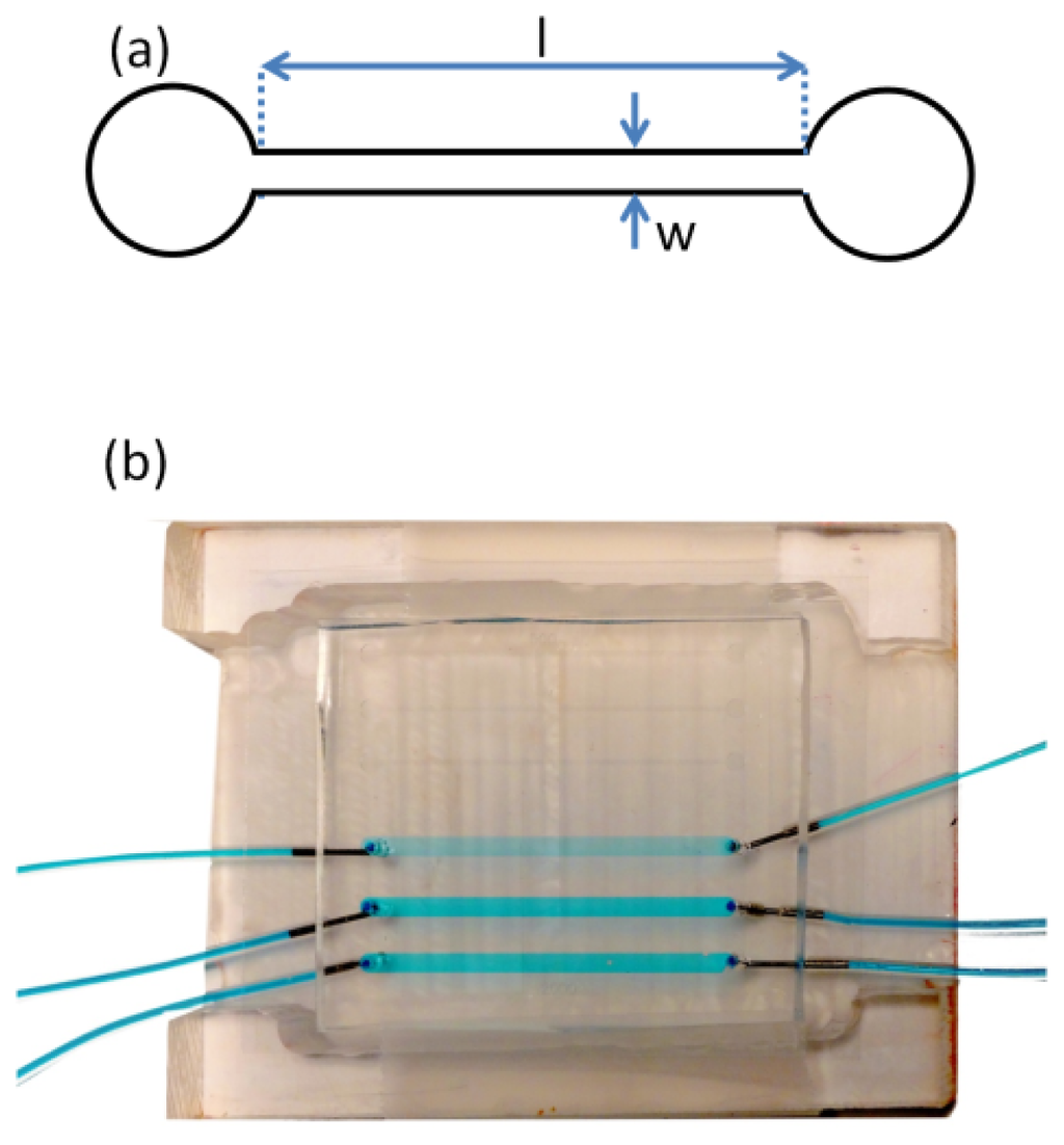 l) of 40 mm. In this study, only the 300 μm-wide channels were used in order to achieve the desired range of average shear rates.
