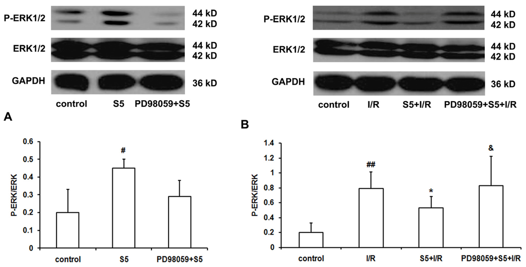 2.3. SO2 Preconditioning Inhibited the Excessively-Induced Myocardial Phosphorylation of ERK1/2 Protein Induced by Ischemia/Reperfusion