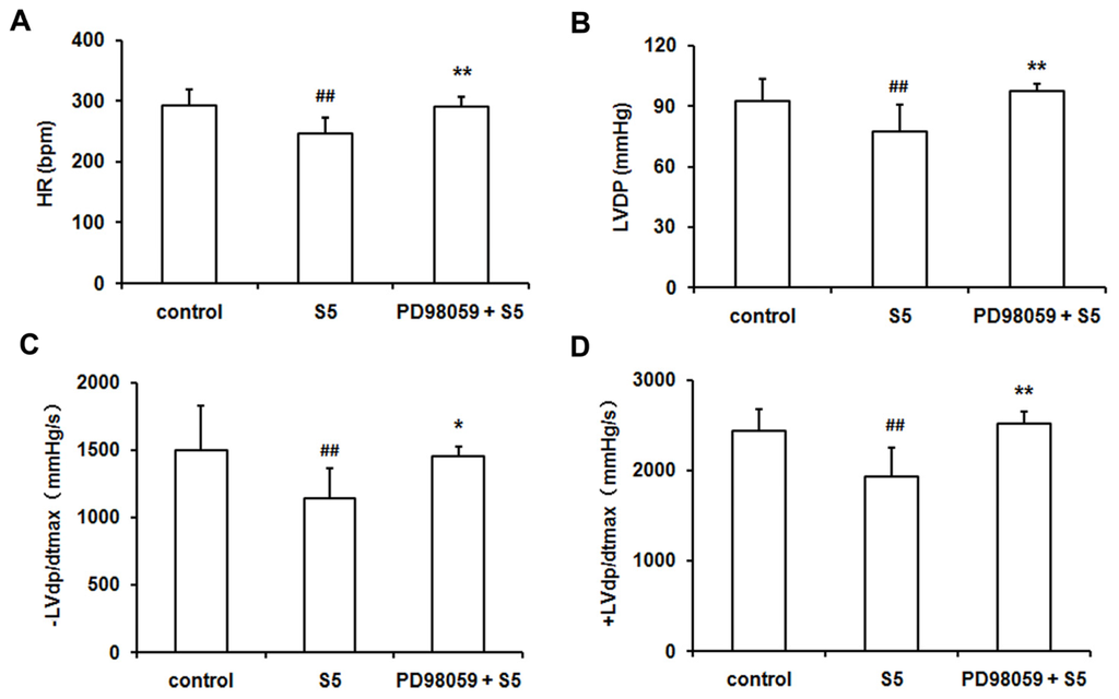 2.2. SO2 Induced Phosphorylation of ERK1/2 Protein and Depressed Cardiac Function in Isolated Perfused Rat Heart without Ischemia/Reperfusion