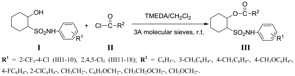 Li X, Cui Z, Chen X, Wu D, Qi Z, Ji M. Synthesis of 2-Acyloxycyclohexylsulfonamides and Evaluation on Their Fungicidal Activity. International Journal of Molecular Sciences. 2013; 14(11):22544-22557. https://doi.org/10.3390/ijms141122544