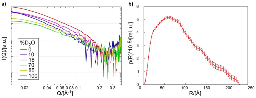- Svergun, D. Determination of the regularization parameter in indirect-transform methods using perceptual criteria. J. Appl. Crystallogr 1992, 25, 495–503. [Google Scholar]