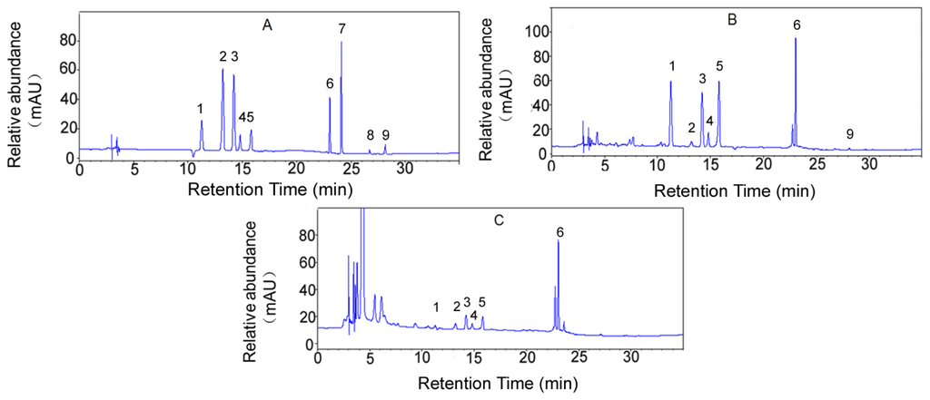 - Zhu, X.; Luo, F.; Zheng, Y.; Zhang, J.; Huang, J.; Sun, C.; Li, X.; Chen, K. Characterization, purification of poncirin from edible citrus ougan (Citrus reticulate cv. suavissima) and its growth inhibitory effect on human gastric cancer cells SGC-7901. Int. J. Mol. Sci 2013, 14, 8684–8697. [Google Scholar]