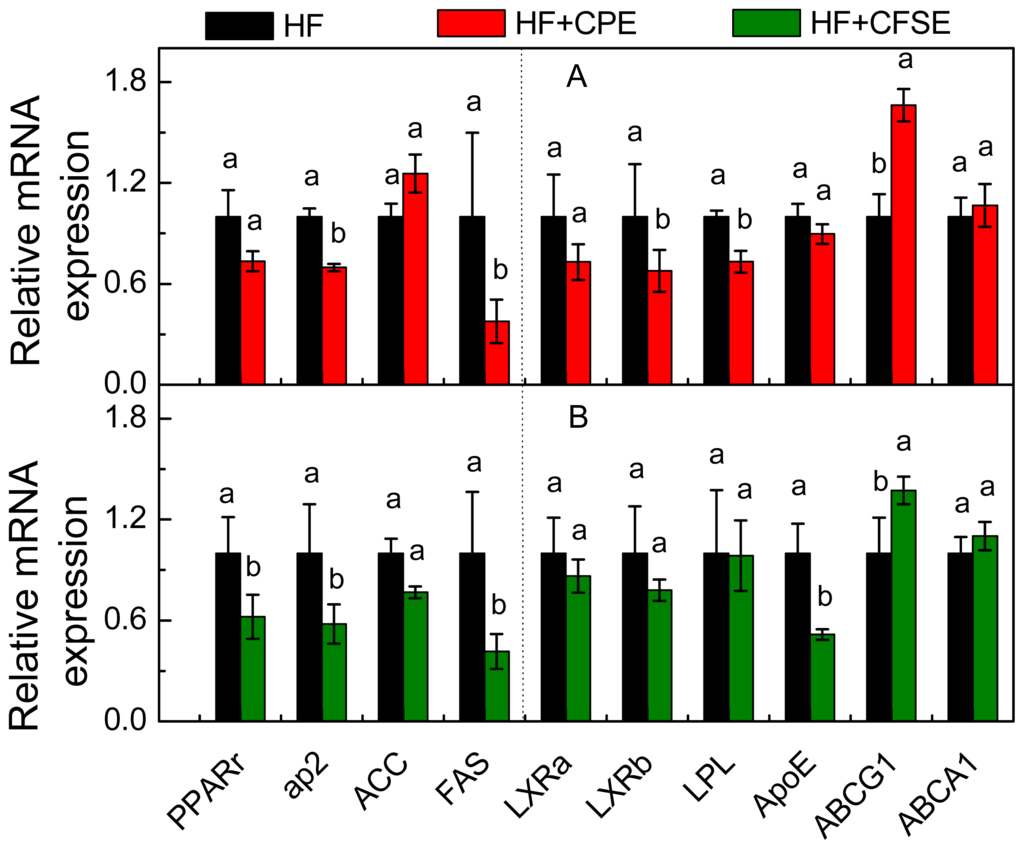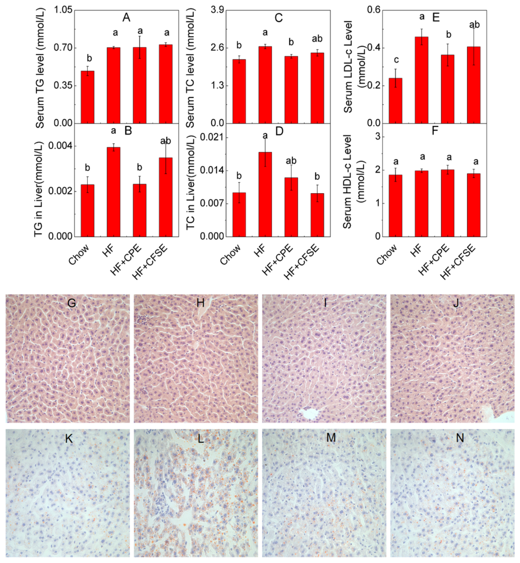 2.4. CPE and CFSE Prevents Lipid Accumulation