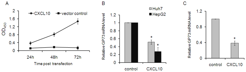 2.2. CXCL10 Is Involved in the Down-Regulation of GP73