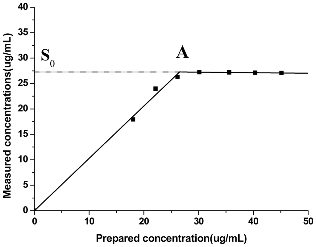 The determination curve of capsaicin equilibrium solubility. Abbreviations: S0, equilibrium solubility; A, the intersection of two lines.