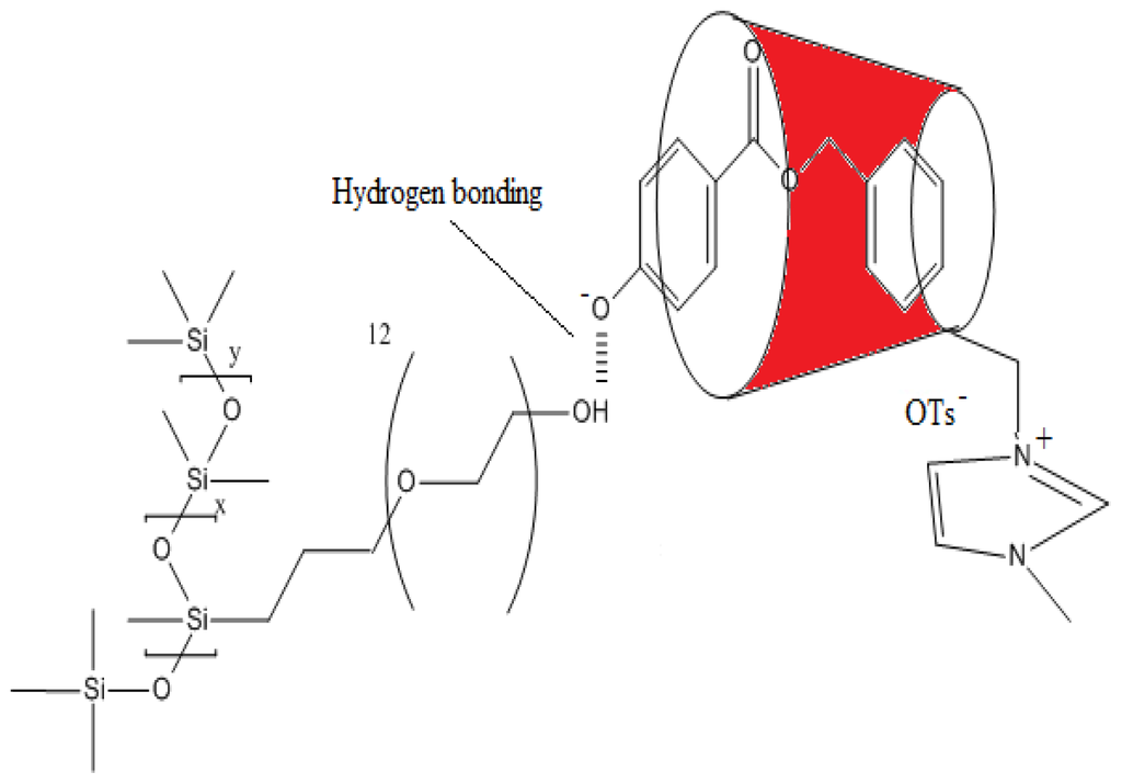 Silicone–ethyleneoxide copolymer (DC 193C) was manufactured by Dow Corning (Shanghai, China) and supplied by Dow Corning Malaysia (Refer to Figure S4). Unfortunately, no information was available on the detailed molecular structure, where the values of x, y and molecular weight of these compounds were provided by the manufacturer. Methylparaben (MeP), ethylparaben (EtP), propylparaben (PrP) and benzylparaben (ArP) were purchased from Sigma–Aldrich (Buches SG, Switzerland). Acetonitrile (HPLC grade) was purchased from Merck (New York, NY, USA) and deionized water used in mobile phase was of conductivity 18 MΩ cm. Sodium sulfate (Na2SO4) was obtained from Merck (New York, NY, USA). Stock solutions of parabens at a concentration of 1000 mg/L were prepared in acetonitrile. Working standard solutions were prepared by step-wise diluting with deionized water of stock solutions. The pH of the solution samples was adjusted with diluted hydrochloric acid or diluted sodium hydroxide solutions. βCD is commercially available and was purchased from Acros (Geel, Belgium). 1-Methylimidazole was supplied from Sigma–Aldrich (Buches SG, Switzerland). N,N-Dimethylformamide (DMF) and hexane anhydrous were purchased form Merck (New York, NY, USA). p-Toluene sulfonic anhydride was prepared according to a literature procedure [43], and was used without further purification.
