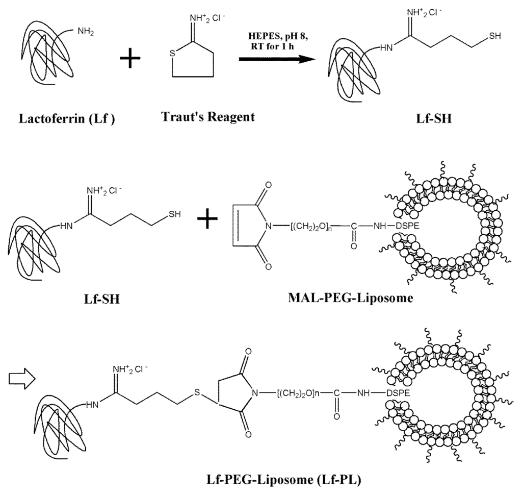 2.1. Conjugation of Lactoferrin (Lf) to PEGylated liposome (PL)
