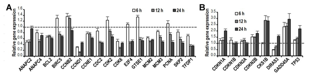 3.7. Real-Time PCR Array for Cell Cycle and Signal Pathway Analysis