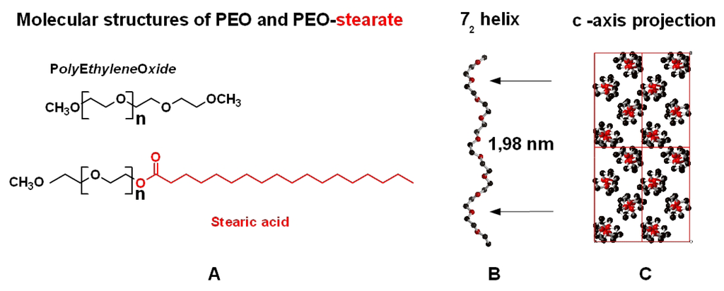 - Choi, Y.W.; Park, J.; Park, Y.; Kim, K.; Lee, Y.; Sohn, D. Structure formation of hydrophobically end-capped poly(ethylene oxide) in the solid state. J. Phys. Chem. B 2007, 111, 12959–12963. [Google Scholar]