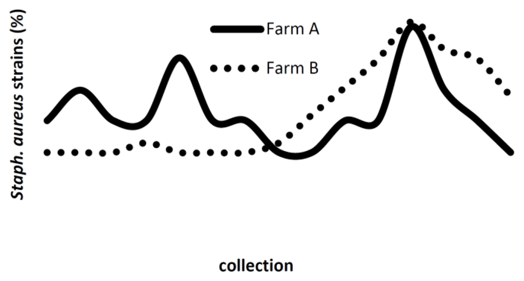 - Smith, E.M.; Green, L.E.; Medley, G.F.; Bird, H.E.; Dowson, C.G. Multilocus sequence typing of Staphylococcus aureus isolated from high-somatic-cell-count cows and the environment of an organic dairy farm in the United Kigdom. J. Clin. Microbiol 2005, 43, 4731–4736. [Google Scholar]