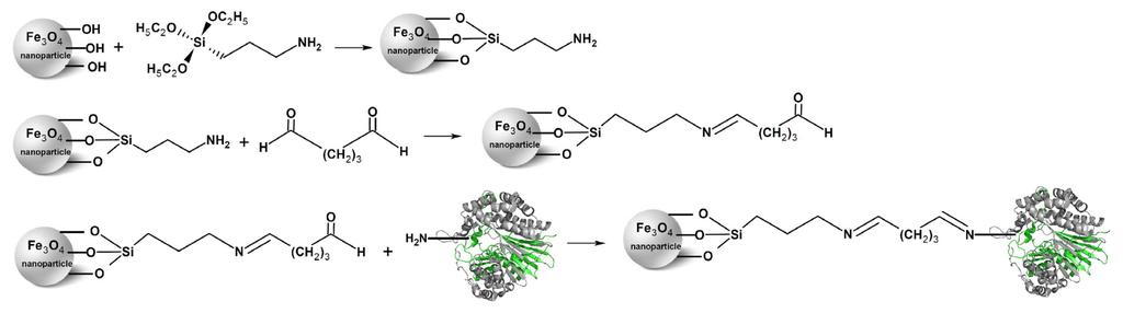 3.4. Preparation of Aldehyde-Functionalized Magnetic Nanoparticles and Enzyme Immobilization