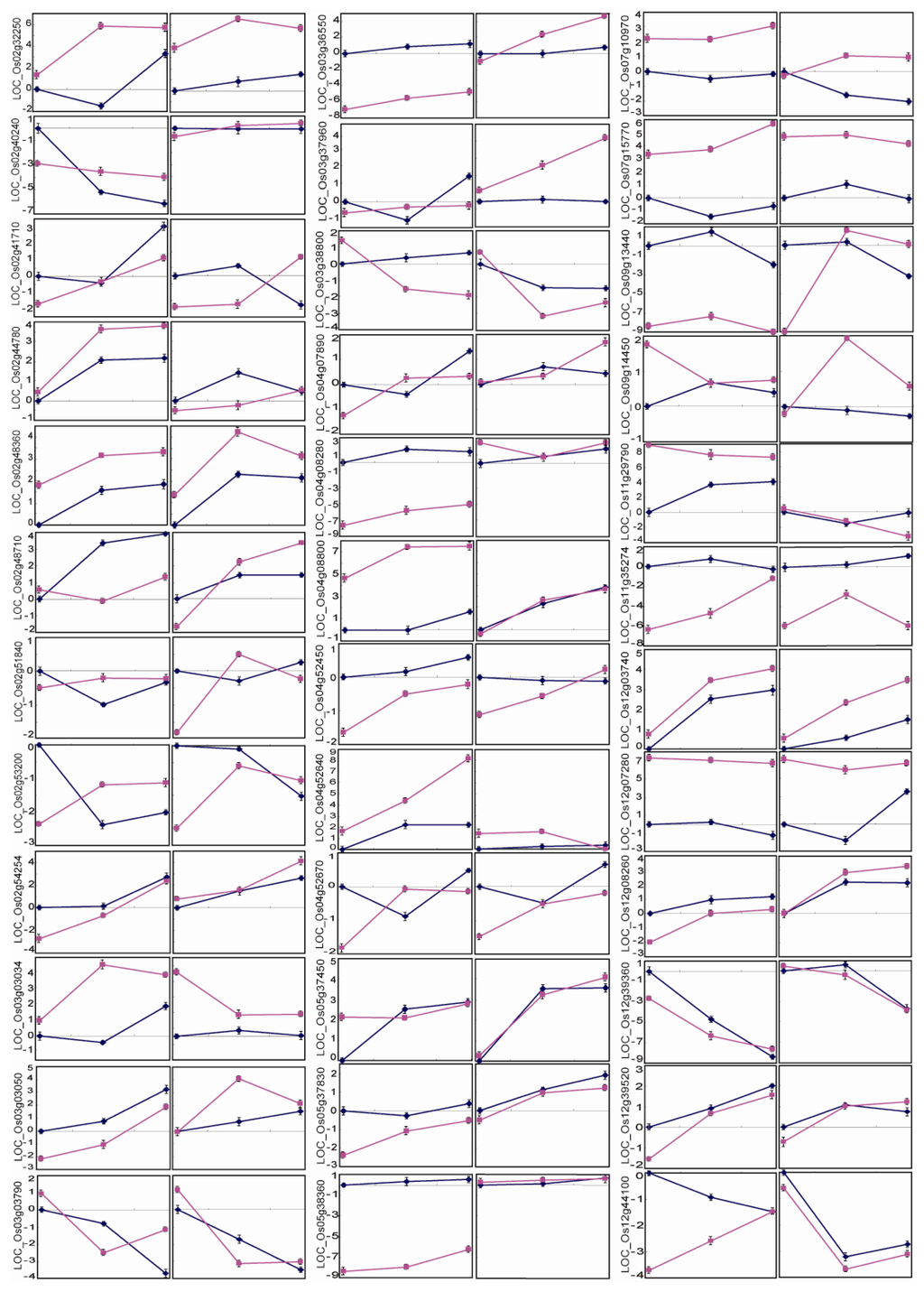 | LOC_Os03g03050 | expressed protein | + | − | ↑ | ↑ | ↑ | ↑ | 4 | a | ||