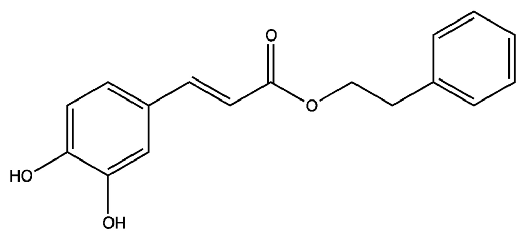 - Celli, N.; Dragani, L.K.; Murzilli, S.; Pagliani, T.; Poggi, A. In vitro and in vivo stability of caffeic acid phenethyl ester, a bioactive compound of propolis. J. Agric. Food Chem 2007, 55, 3398–3407. [Google Scholar]