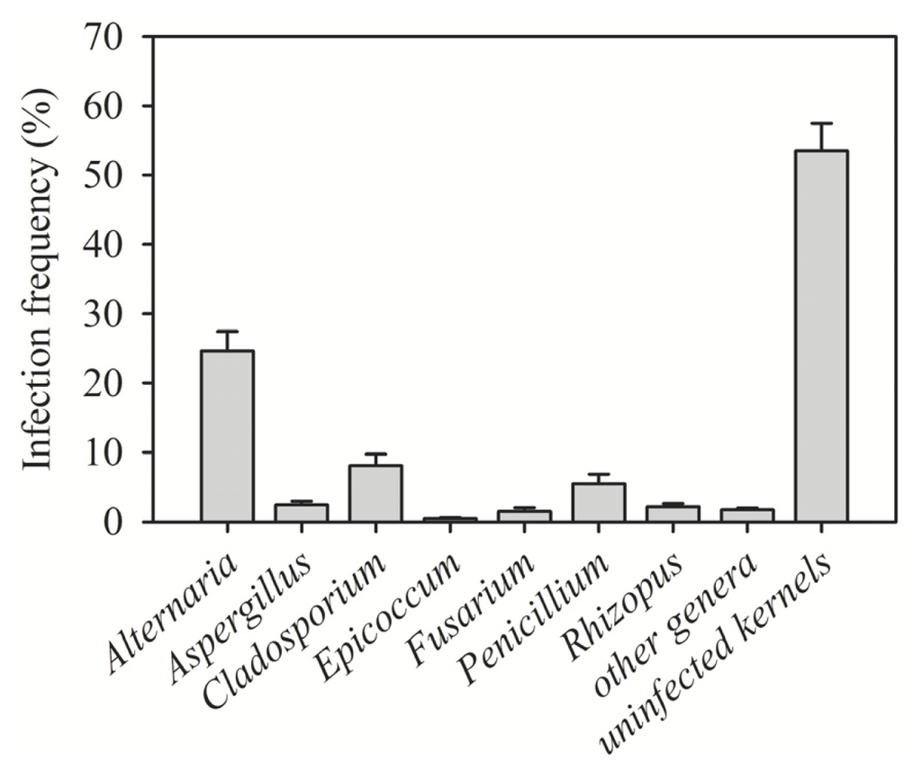 The frequency of each fungal genus was calculated as the percentage of the total number of kernels.