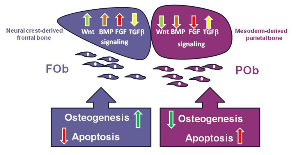 - Li, S.; Quarto, N.; Longaker, M.T. Activation of FGF signaling mediates proliferative and osteogenic differences between neural crest derived frontal and mesoderm parietal derived bone. PLoS One 2010, 5, e14033. [Google Scholar]