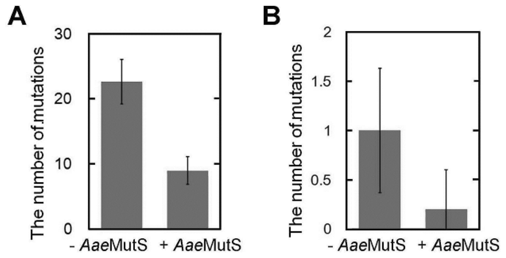 AaeMutS decreased the number of polymerase-generated mutations to approximately 30% of the control level (