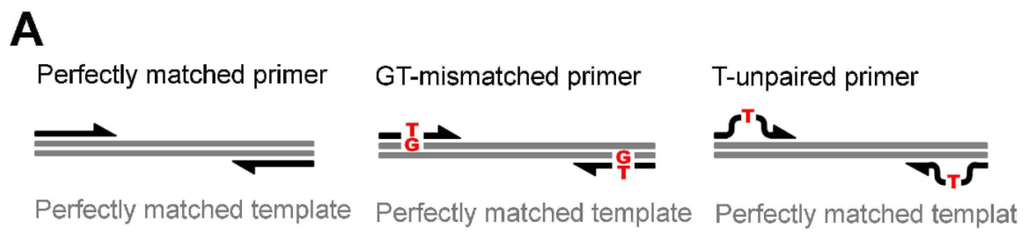 Figure 4A). We found that mismatches in the template did not affect amplification efficiency in the absence of