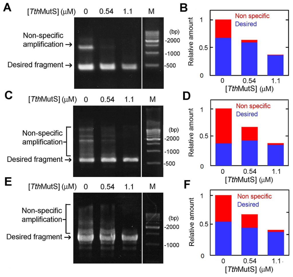 TthMutS was sufficient to suppress nonspecific amplification. In the same experiments, we also tested the thermostable