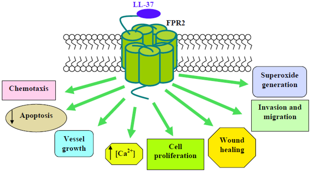 - Iaccio, A.; Cattaneo, F.; Mauro, M.; Ammendola, R. FPRL1-mediated induction of superoxide in LL-37-stimulated IMR90 human fibroblasts. Arch. Biochem. Biophys 2009, 481, 94–100. [Google Scholar]