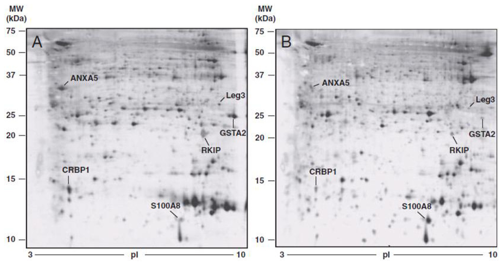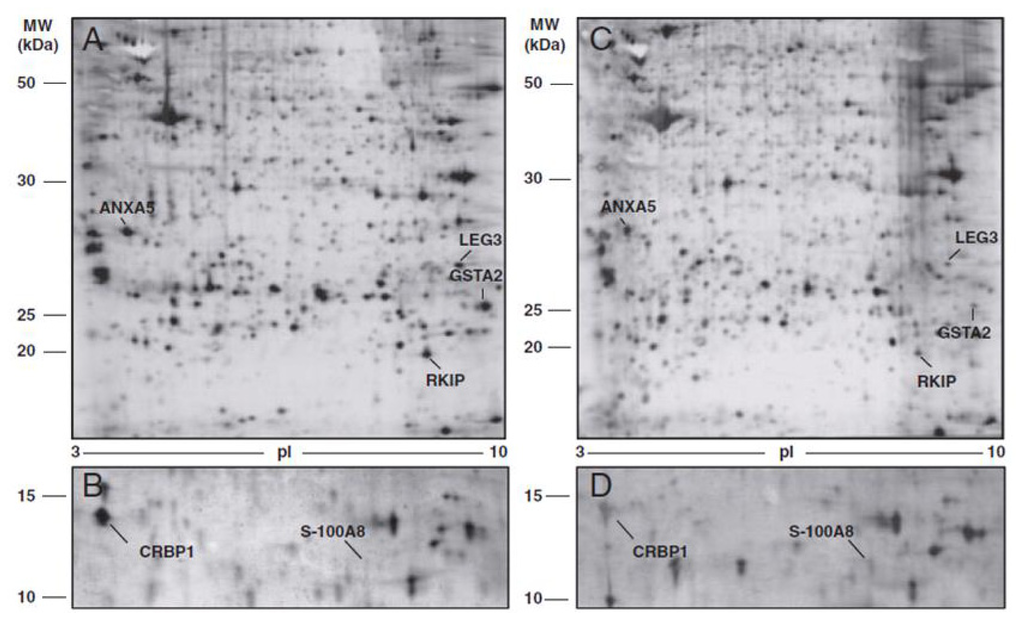 | Phosphatidylethanolamine-binding protein 1 (PEBP) | ↓ | |