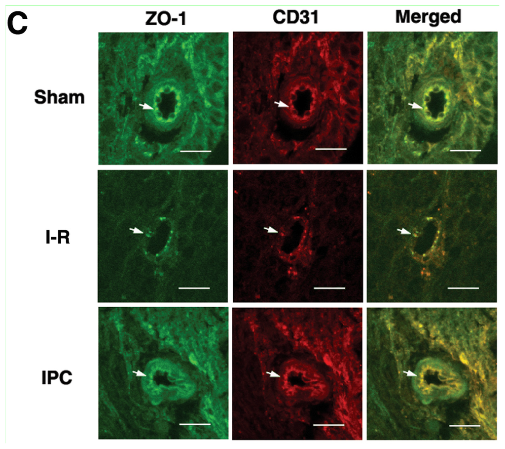 2.3. IPC Preserves Tight Junction Protein ZO-1 after Spinal Cord I-R Injury
