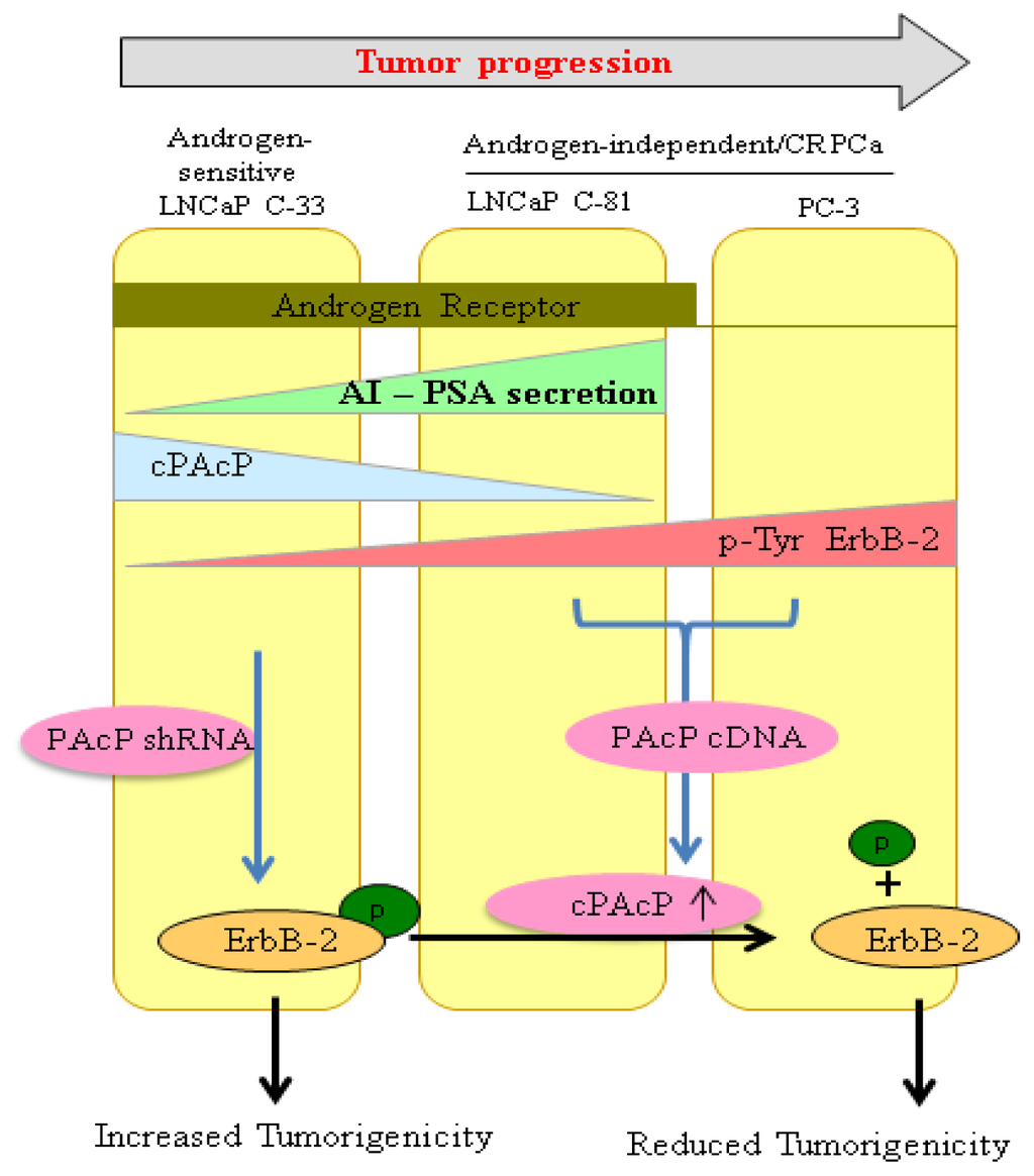 4.1. Cellular PAcP as a Tumor Suppressor
