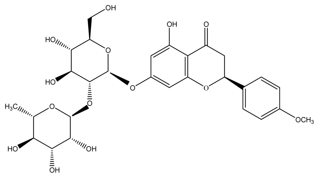 Poncirin, the 7-O-neohesperidoside of isosakuranetin (Figure 1), is a flavanone glycoside with bitter taste. Pharmacological studies and clinical practices demonstrated that poncirin and its metabolites have multiple activities, such as anti-inflammatory properties [], protective effects on potential gastric disease [], defense against bacterial or viral infections and stresses [], and promotion of osteoblast differentiation in mesenchymal stem cells [].