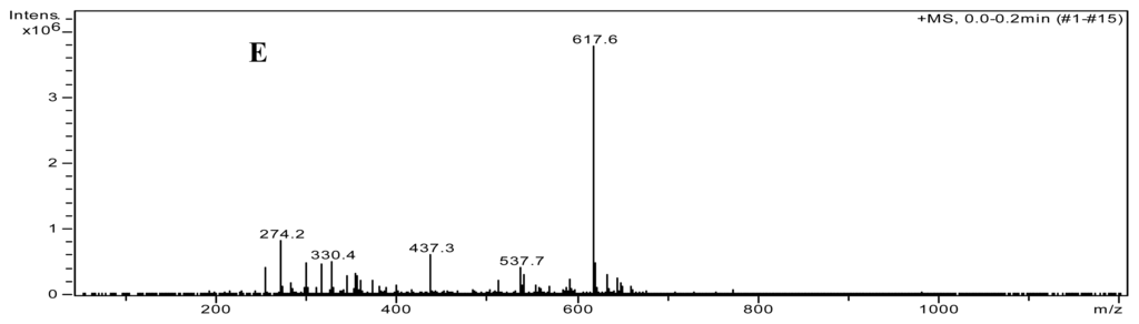 For the LC-MS analysis, nitrogen was used as the nebulizing gas at a pressure of 10 psi and the drying gas at a flow rate of 5 L/min. The ion-source temperature was set at 250 °C, and the capillary voltage was set at 4000 V. Data reported here were acquired using software Esquire 5.0 (Bruker, Massachusetts, MA, USA).