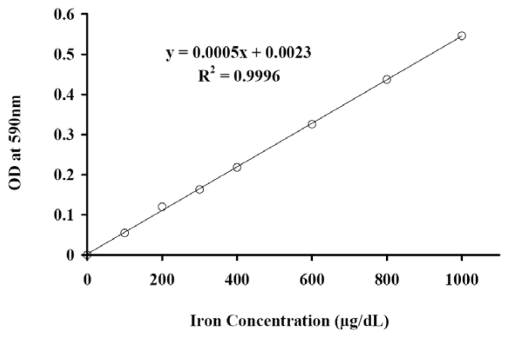 3.2.3. Quantitative Colorimetric Iron Assay