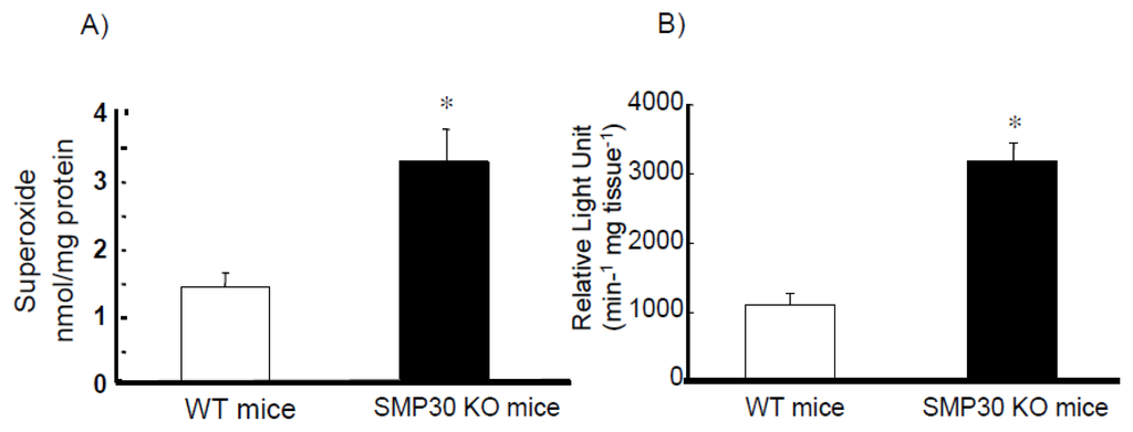Mizukami, H.; Saitoh, S.-i.; Machii, H.; Yamada, S.; Hoshino, Y.; Misaka, T.; Ishigami, A.; Takeishi, Y. Senescence Marker Protein-30 (SMP30) Deficiency Impairs Myocardium-Induced Dilation of Coronary Arterioles Associated with Reactive Oxygen Species. Int. J. Mol. Sci. 2013, 14, 9408-9423. https://doi.org/10.3390/ijms14059408