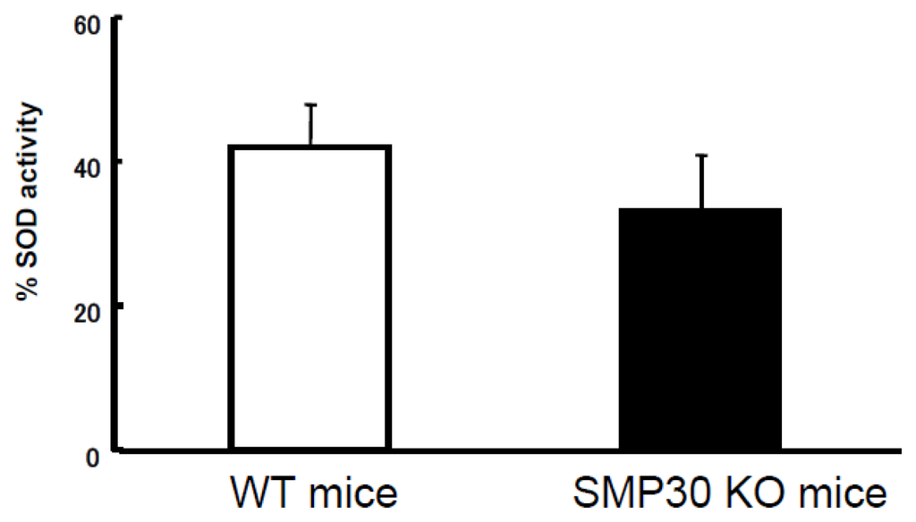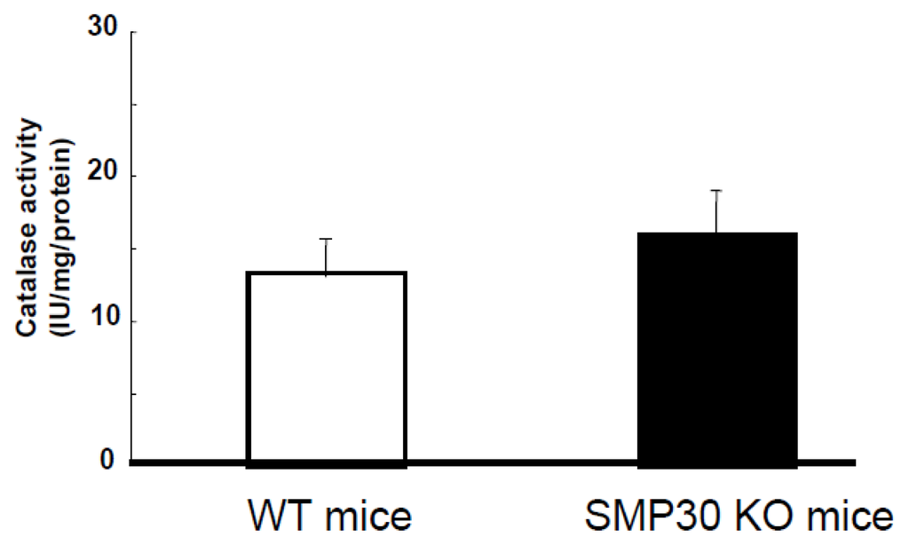 - Son, T.G.; Zou, Y.; Jung, K.J.; Yu, B.P.; Ishigami, A.; Maruyama, N.; Lee, J. SMP30 deficiencty causes increased oxidative stress in brain. Mech. Age Dev 2006, 127, 451–457. [Google Scholar]